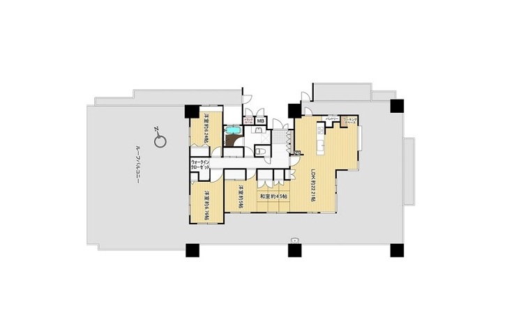 - 専有面積:壁芯 75.76㎡(22.91坪) バルコニー 27.81㎡(8.41坪)